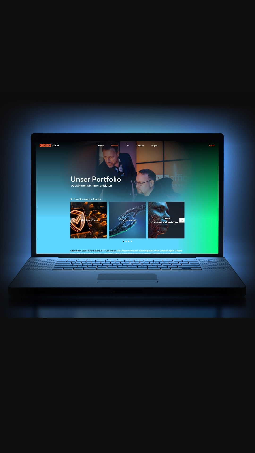 Es fehlte ein konsistentes Branding, die Tonalität und Botschaften waren unscharf und die Darstellung der IT-Dienstleistungen wirkte lose und nicht aufeinander aufbauend. Zudem war auf den ersten Blick nicht klar, welche IT-Leistungen cubeoffice eigentlich im Kern anbietet.